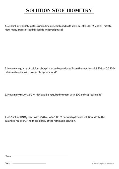 Chemistry Worksheet Solution Stoichiometry Answers